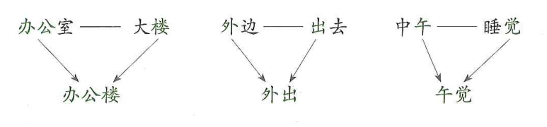 🔊 办公室 (văn phòng) + 🔊 大楼 (toà nhà) → 🔊 办公楼 (toà nhà văn phòng)