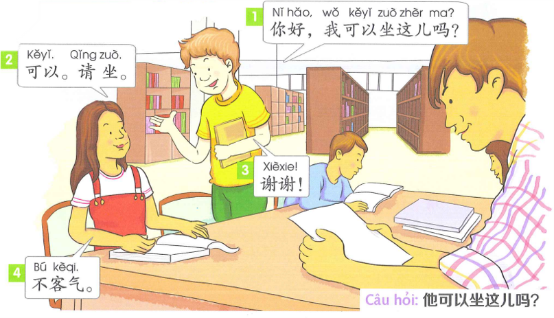 Câu hỏi 1: 🔊 他可以坐这儿吗?