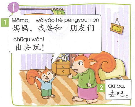 • Xiǎo Shānyáng: Māma, wǒ yào hé péngyoumen chūqù wán!
