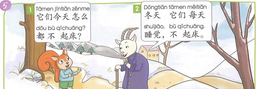 • Dōngtiān tāmen měitiān shuìjiào, bù qǐchuáng.