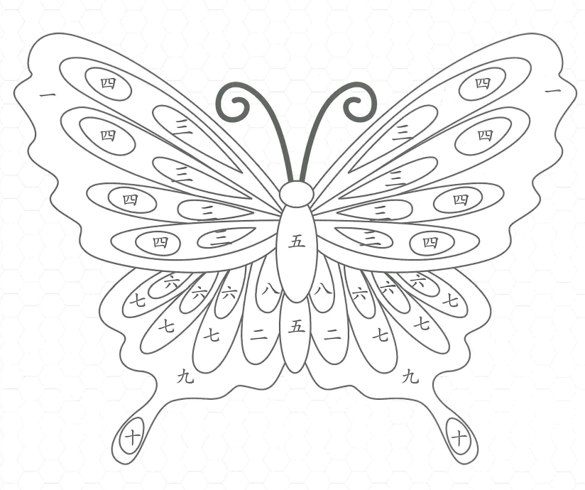 给数字相同的部分涂上一样的颜色,画出一只可爱的蝴蝶。