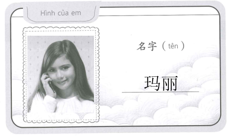 Đặt cho mình một cái tên bằng tiếng Trung Quốc rồi làm một thẻ tên. Em hãy nhờ giáo viên giúp đỡ nếu cần.