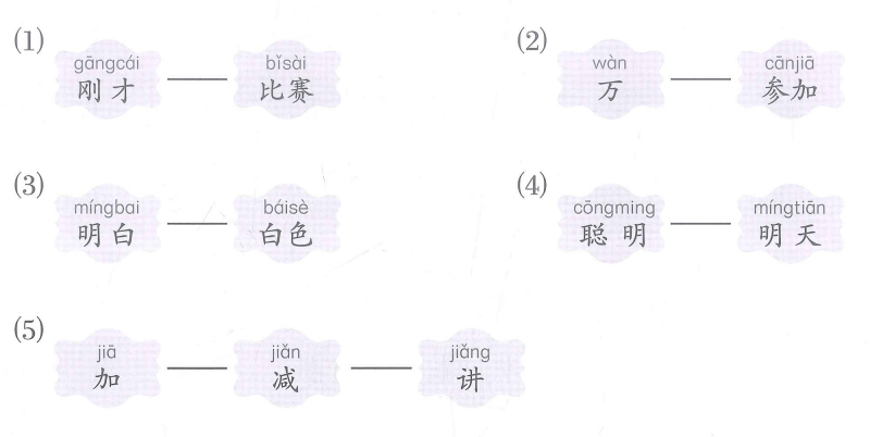 (5) jiā 加 —— jiǎn 🔊 减 —— jiǎng 🔊 讲
