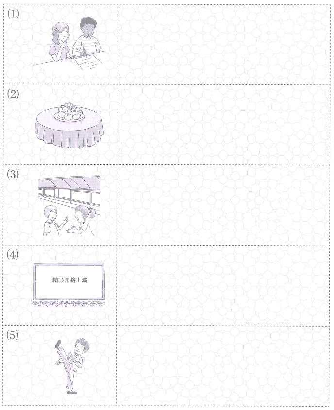 (5) 🔊 今天的功夫课很难,你明天能练(习)好吗?
